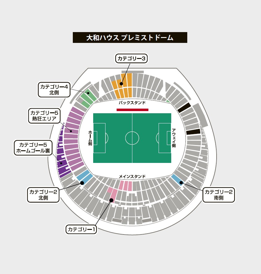 | カテゴリー5ホームゴール裏 | 自由席 | ¥43,500 | ¥51,000 | ||||